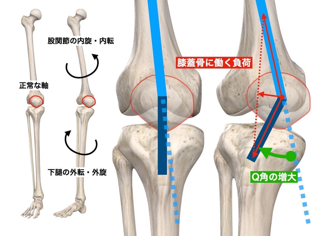 Q角やFTAといった膝の角度(アライメント)が股関節や足関節のトレーニングによって変化する場合があることも考慮しなければなりません。