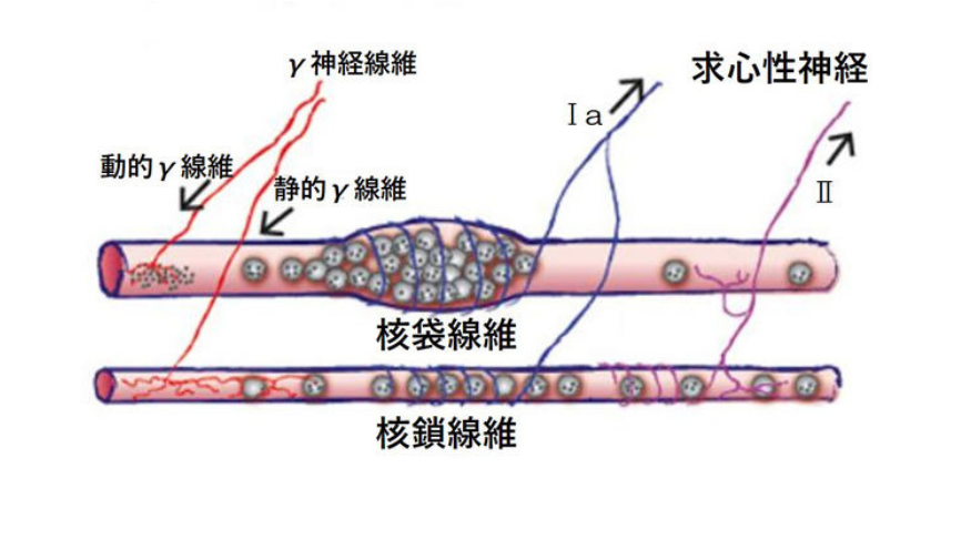 そこでγ運動ニューロンを刺激し、弛緩した筋紡錘を伸張し、筋収縮を強く行えるようにⅠa線維の求心性線維をさらに刺激します。