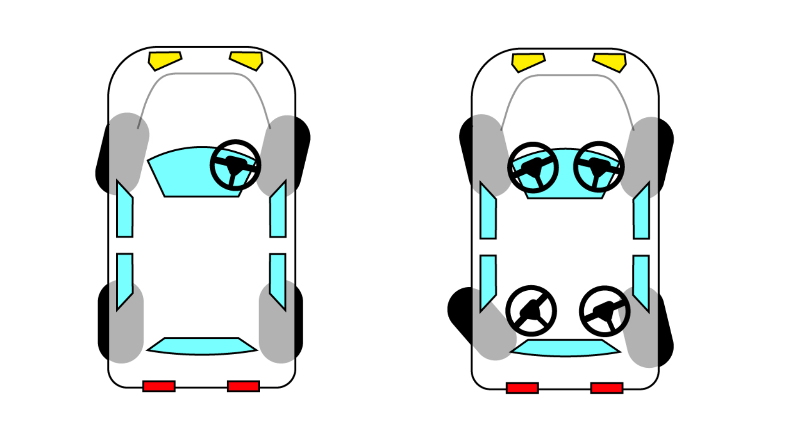 1つ1つのタイヤの方向を制御して車を操作することはありません。