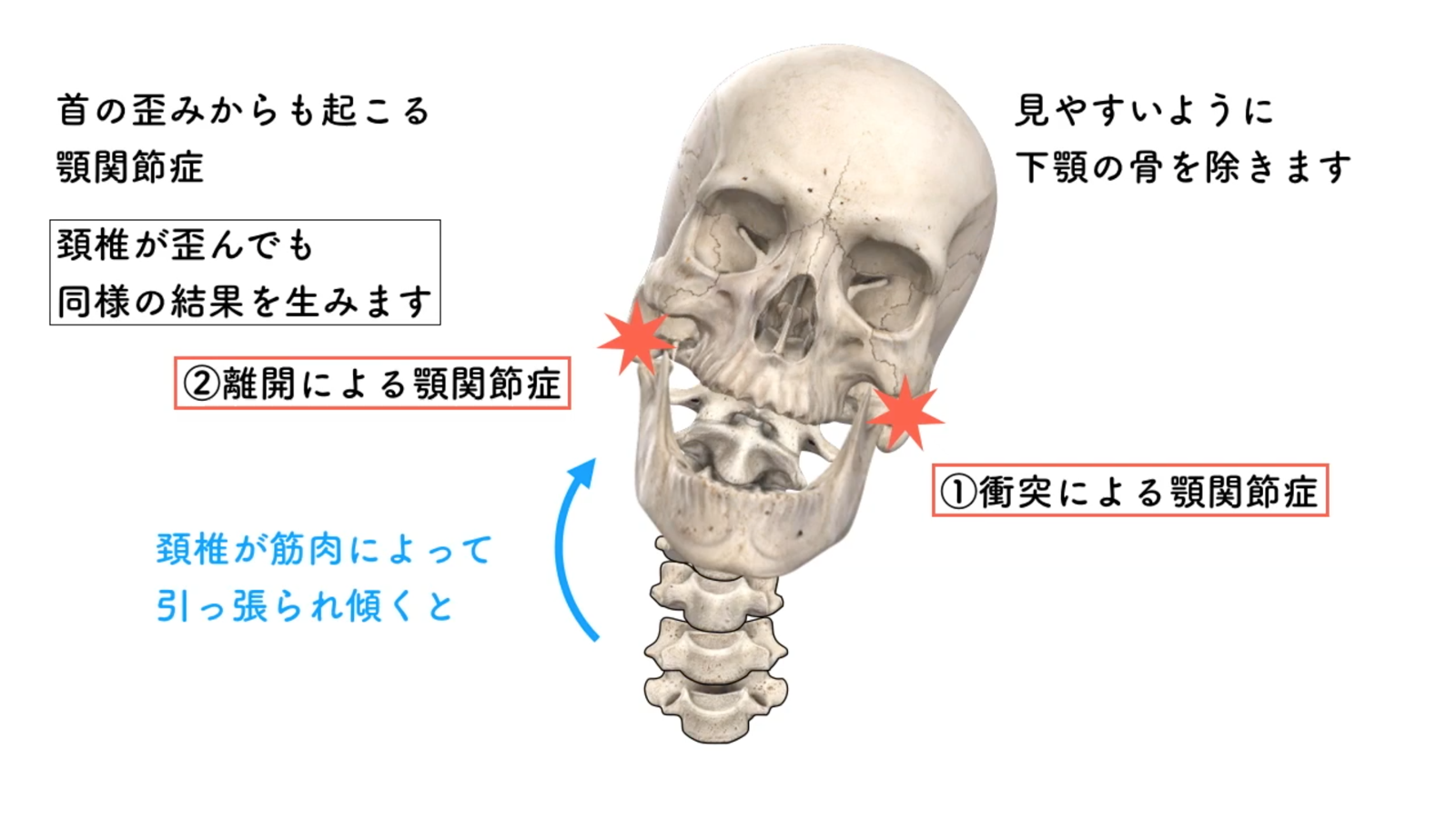 下顎骨は重力によってぶら下がっているため、上顎と下顎によって構成される顎関節に負担が生じます。