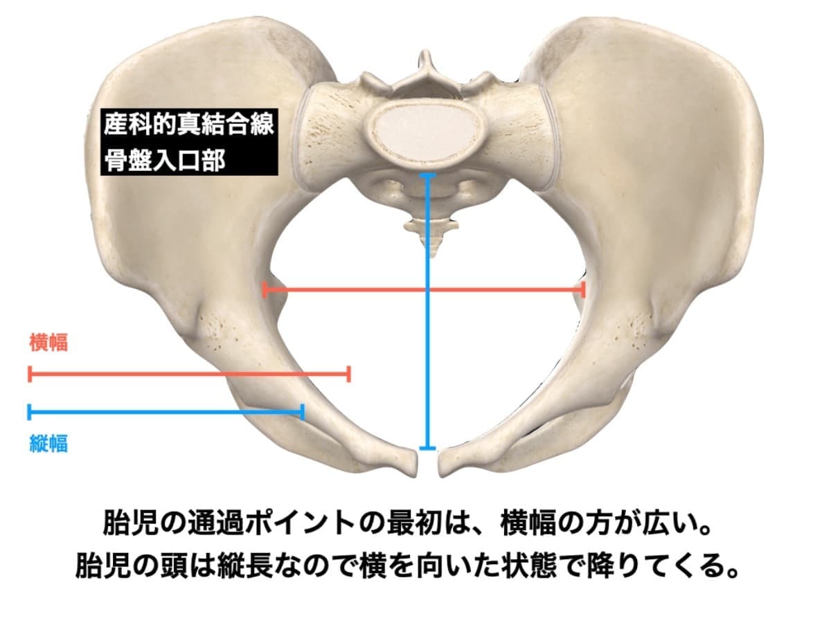 骨盤の入り口は横長に対して、胎児の頭は縦型です。